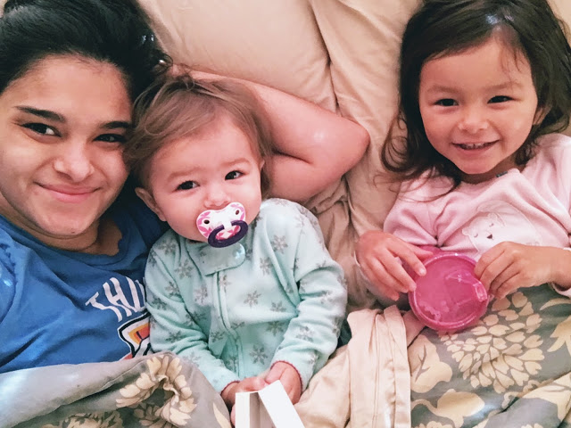 A little before her first birthday, Lucy weaned and started sleeping through the night. Aside from a couple of setbacks from illness and teething, both girls now sleep until about 9:00. For a while, I slept until they woke up out of habit, but then I realized I could finally consistently get some quiet alone time in the morning. I also felt a little guilty about sleeping in so late after getting a full night’s rest! Even if I am up and about before they are awake, it is still my favorite daily habit to have a slow morning, where we cuddle in my bed while they drink their milk. For about fifteen minutes, we tickle and giggle and sing and snuggle. We’re still in our jammies and just finishing up breakfast by 10:00. Annie just turned three and she feels like such a kid already; her baby and toddler phase is quickly fading. She will be in school all day in a short eighteen months. I can’t believe that. Just thinking of that milestone is enough to erase all guilt I may feel of these slow mornings. Staying at home with a three year old and a fourteen month old can be exhausting and wearing, and it drains my patience some days. But I couldn’t be more thankful that I get to stop and just snuggle these girls whenever I want.